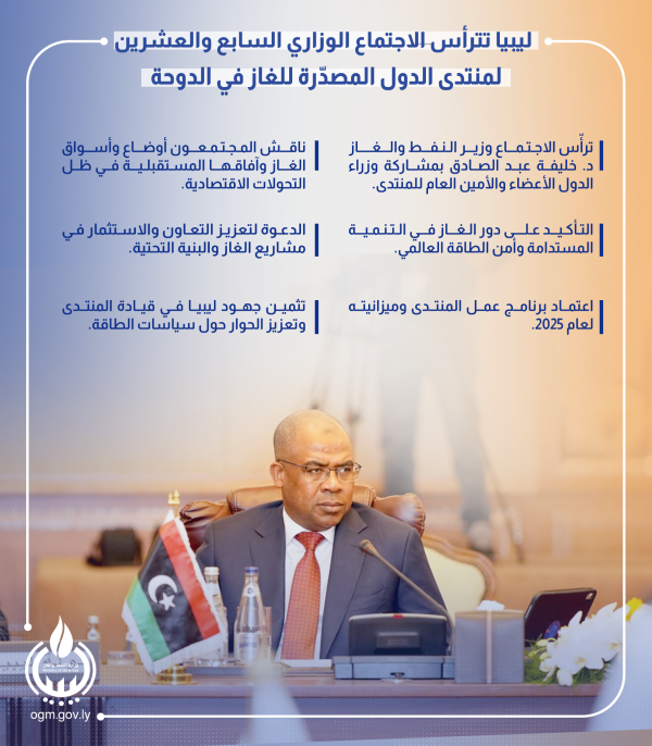 ليبيا تترأس الاجتماع الوزاري السابع والعشرين لمنتدى الدول المصدرة للغاز في الدوحة