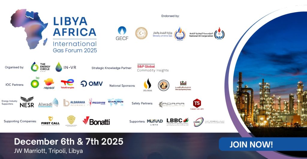 إعلانالأخبارنوفمبر 17, 2025منتدى ليبيا-أفريقيا الدولي للغاز – طرابلس، في الفترة من 6 إلى 7 ديسمبر 2025!